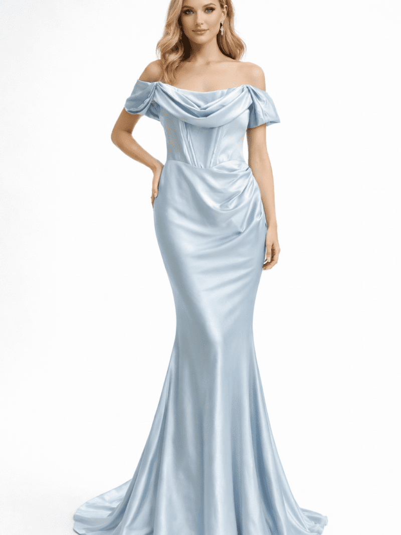 $327.45 USDThe Cote Maison Couture CM700 Nivara Gown is a off the shoulder satin evening dress. That is available in four different colours: Black, Green, Royal… -