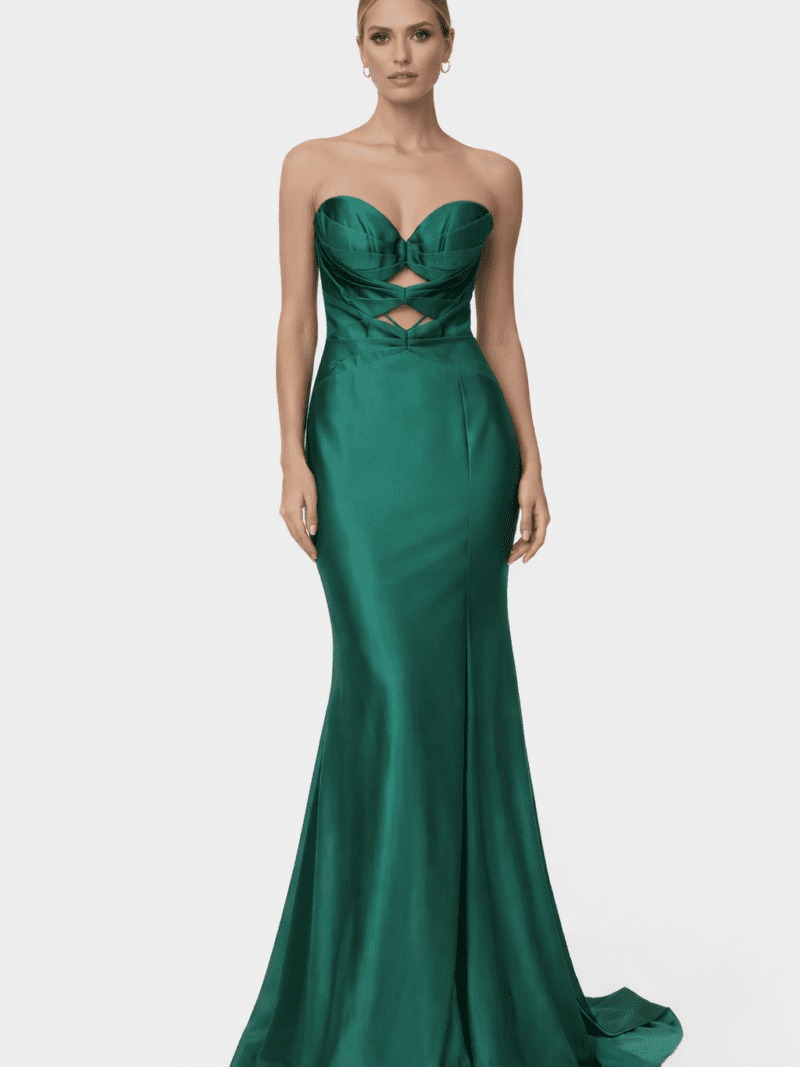 $387.16 USDThis elegant dress showcases a sculpted, strapless with a fitted design enhances the figure, flowing effortlessly into a graceful floor-length finish. Making this dress a… -