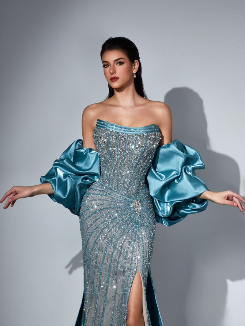 $518.41 USDThis dress is a strapless fitted, site split that will be the perfect choice for any event you want to shine in. This dress is… -